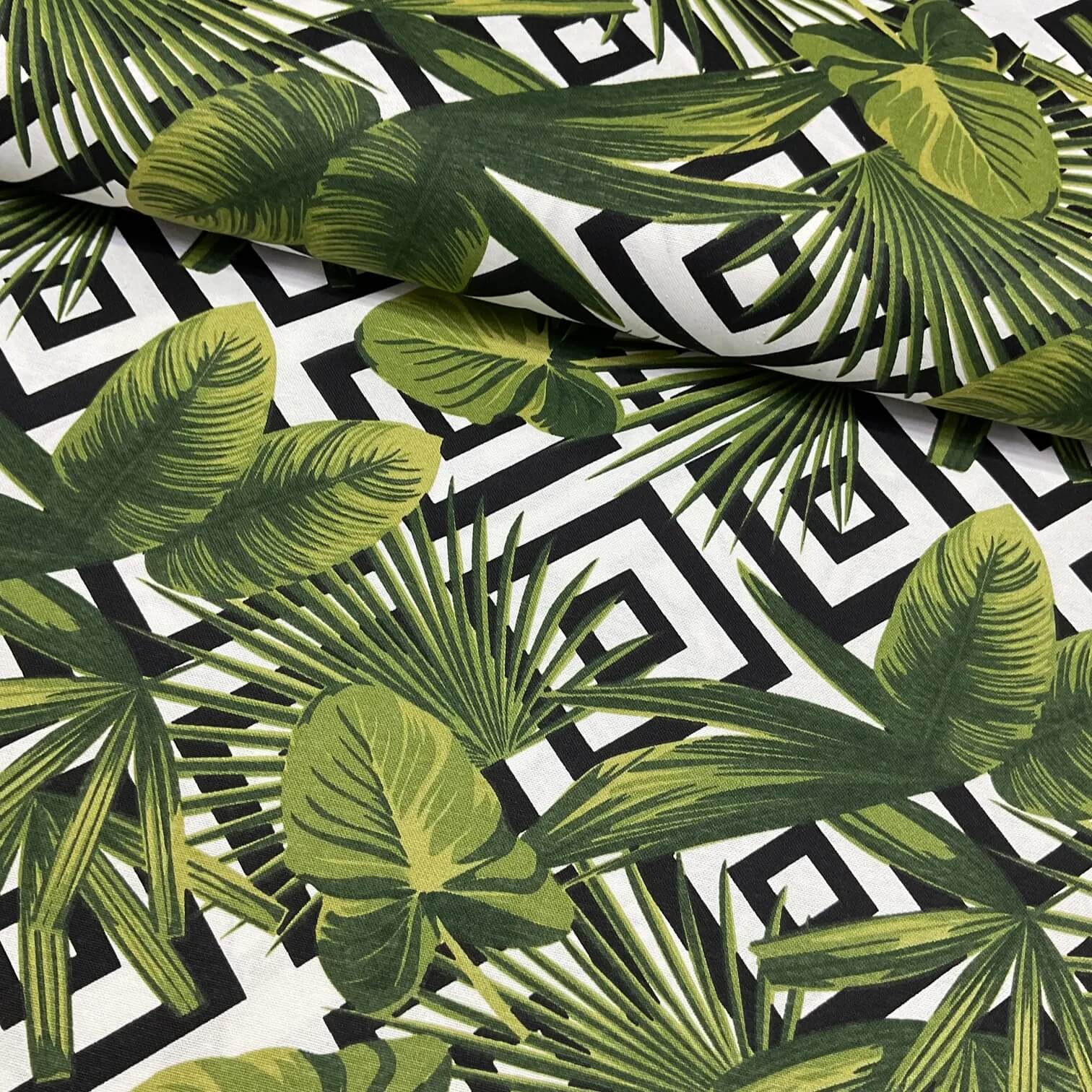 This tropical upholstery fabric is a palm leaves upholstery fabric for cushions, pillows, chairs, sofas, couches, benches and stools. It is a botanical print fabric that can be used as an indoor fabric and outdoor fabric. This exotic fabric is 65% cotton and 35% polyester. It is durable, healthy and breathable. It is a hawaiian fabric for pillows, cushions, throw pillows, bags, sofas, curtains, drapes and various sewing projects. This black white geometric fabric can also be used as a furnishing fabric, furniture fabric, interior fabric, kitchen fabric, drapery fabric, throw pillow fabric, cushion fabric, bed fabric, sofa fabric, couch fabric, bench fabric, slipcover fabric, chair fabric, armchair fabric, bedspread fabric, table fabric, tablecloth fabric, curtain fabric, valance fabric, blind fabric, window fabric, DIY fabric, pillow fabric, bedding fabric, apron fabric, runner fabric, garden fabric, indoor tent fabric, bag fabric, tote bag fabric, picnic fabric, placemat fabric, upholstery fabric, craft fabric, sewing fabric, decorator fabric, home textile fabric or a home decor fabric.
