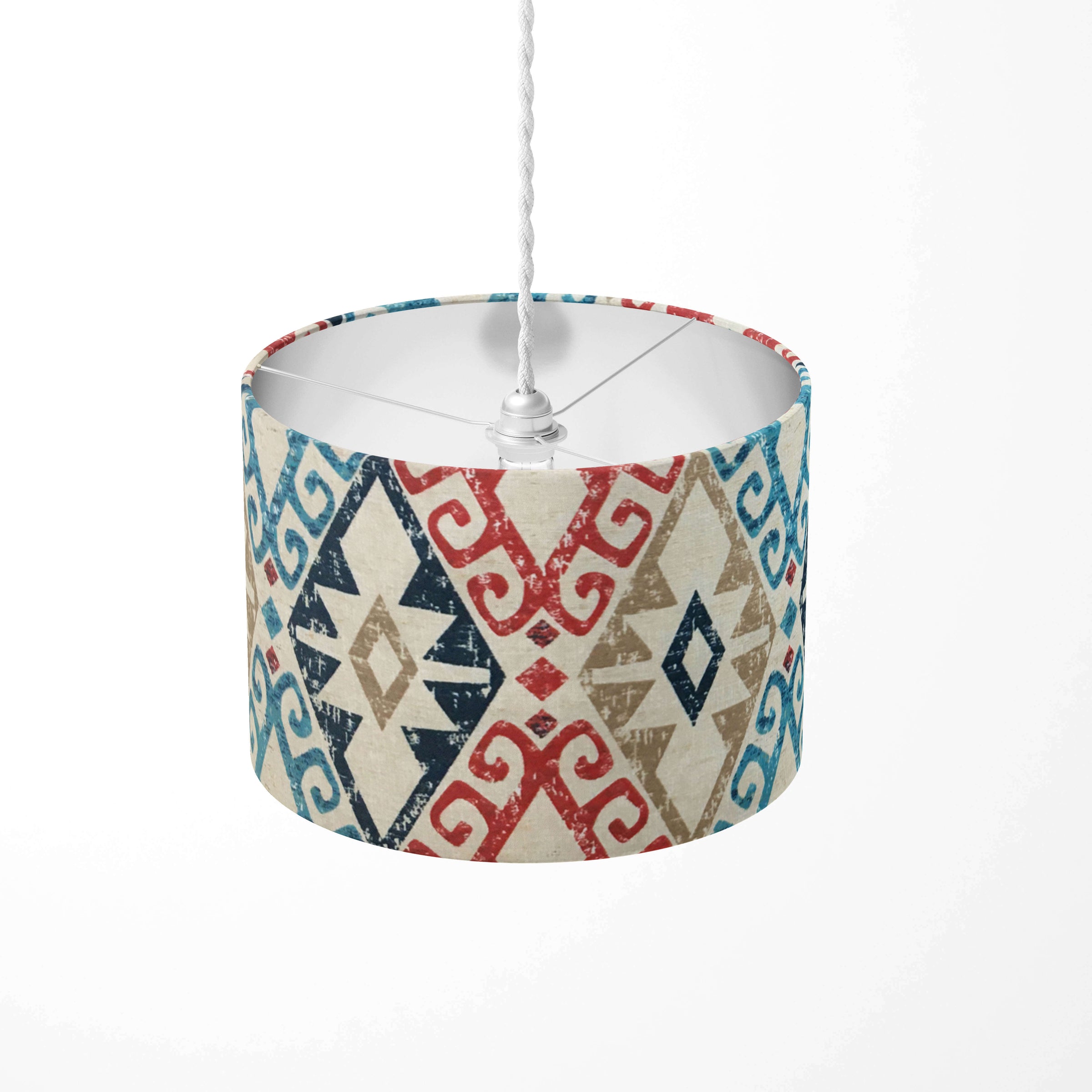 Aztec Lampshade, Kilim Lampshade, Red and Blue Ethnic Tribal Lampshade