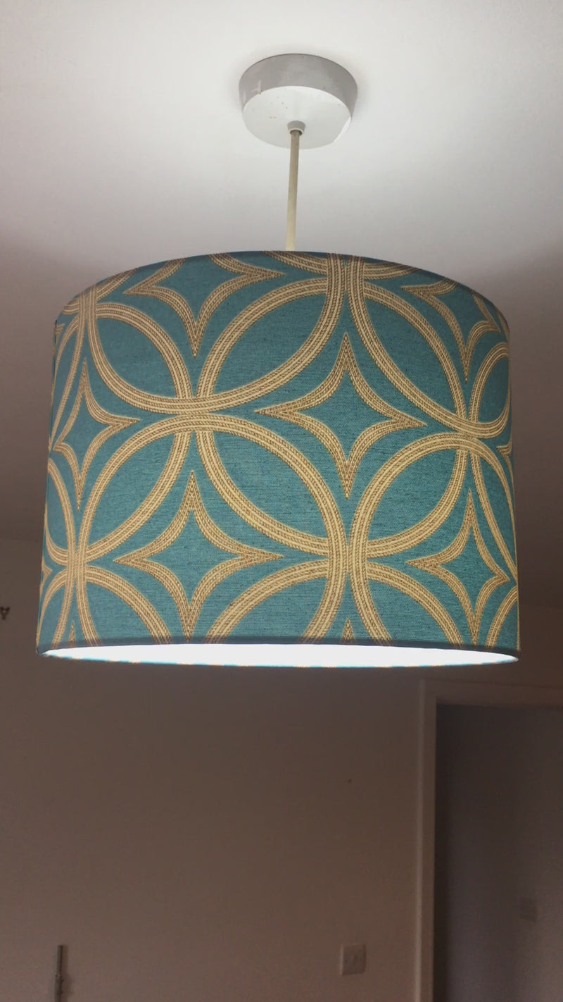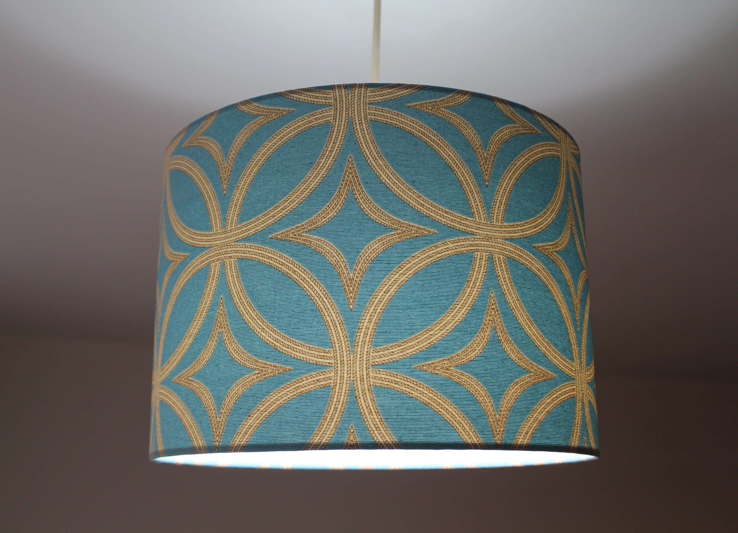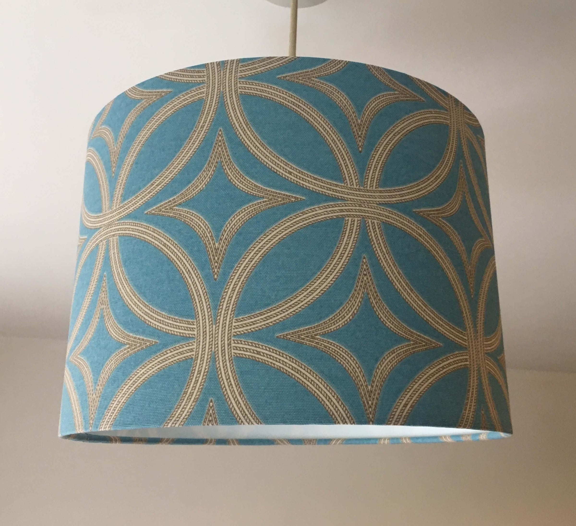 Geometric Print Lampshade, Turquoise Blue Art Deco Table Ceiling Lampshade