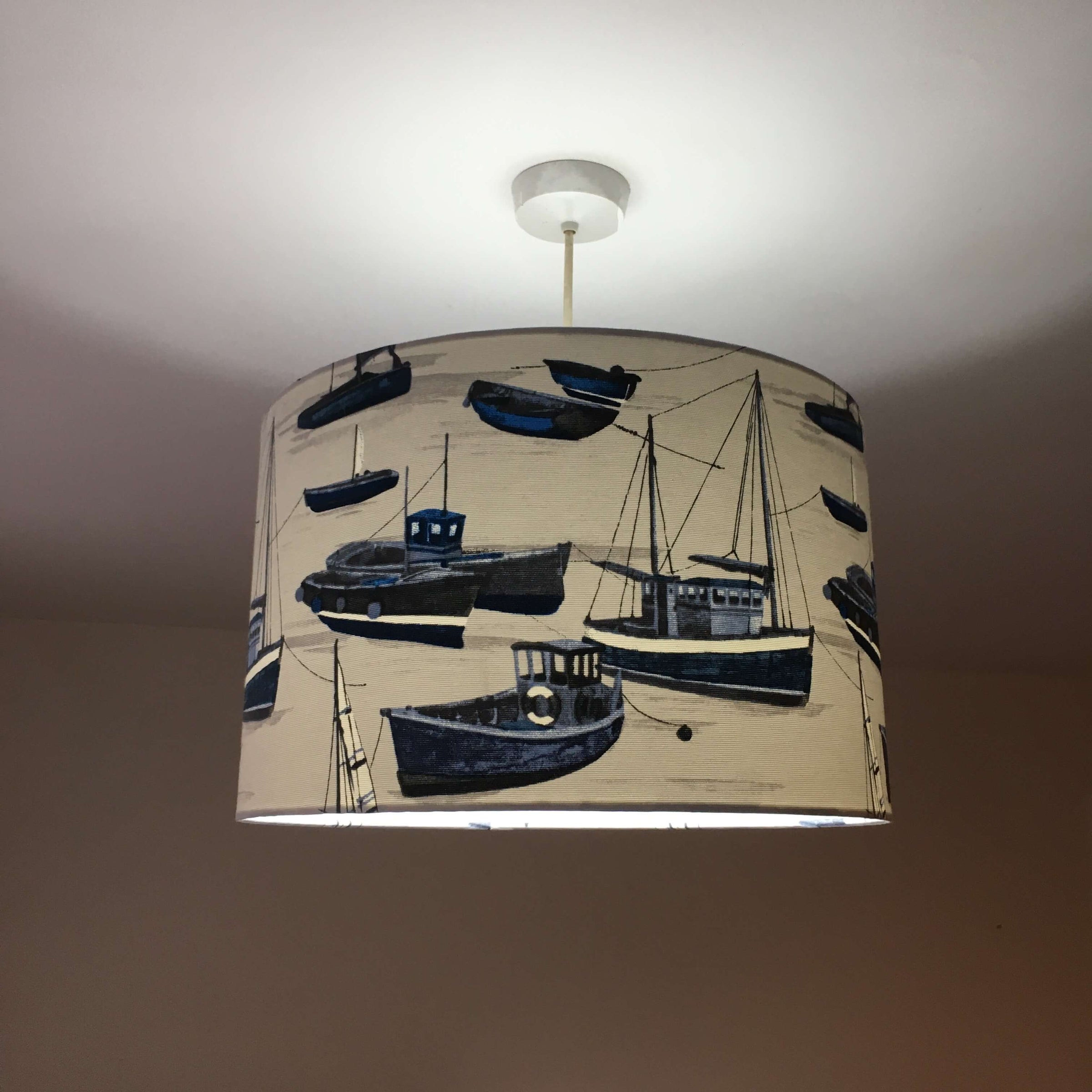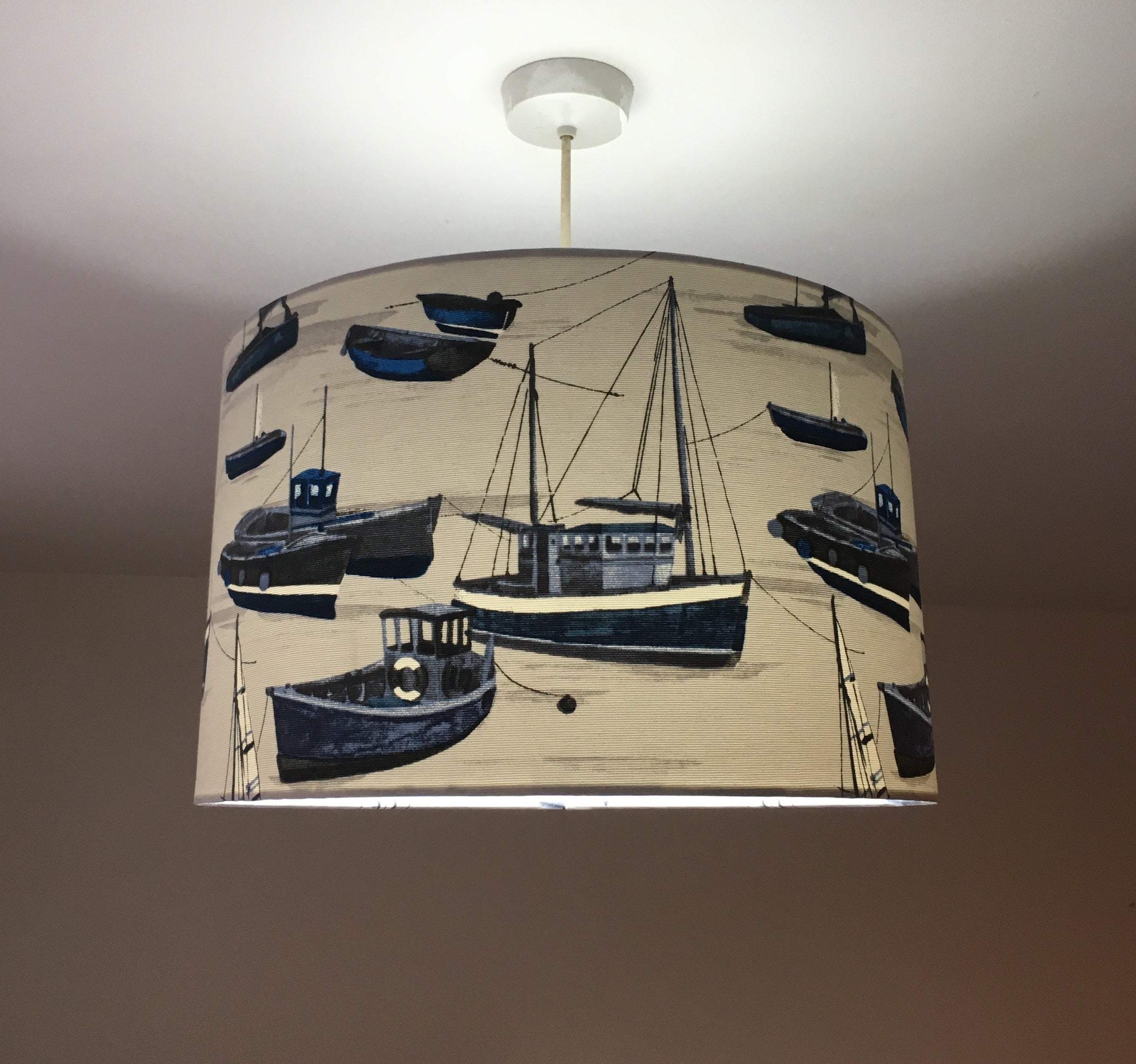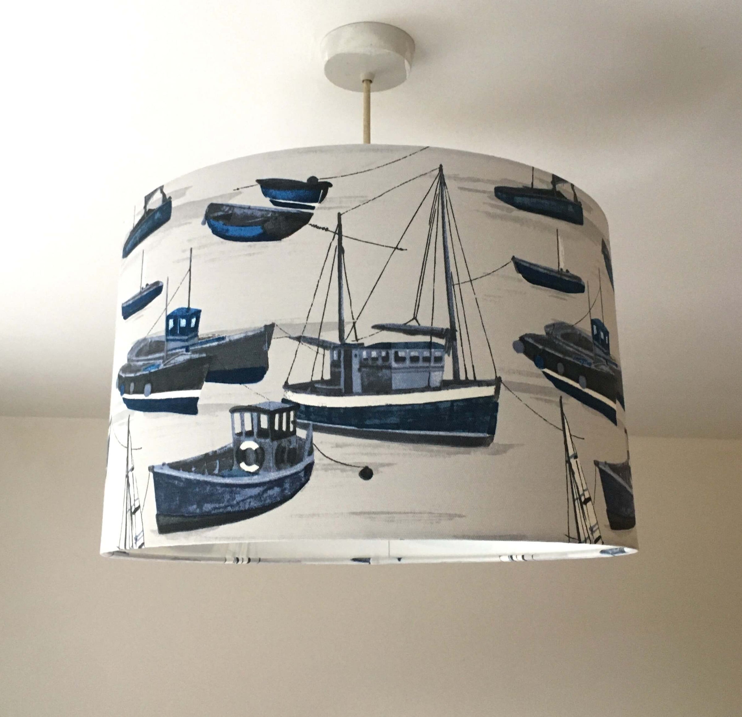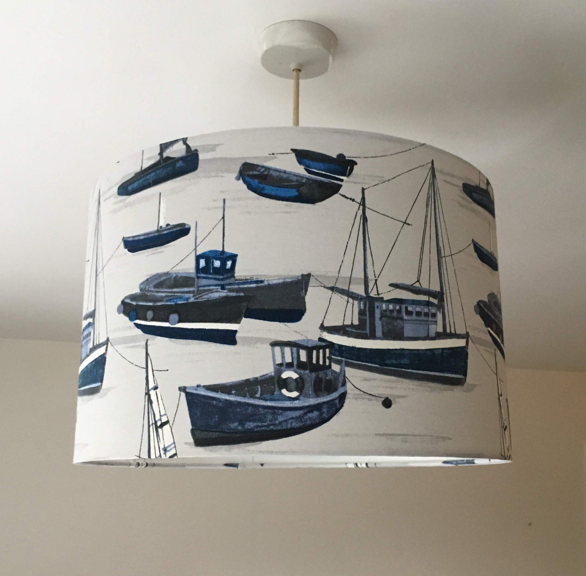 This nautical lampshade is a boat lamp shade for bedroom, living room or kitchen. It is a blue white lampshade for table lamps, floor lamps or ceiling pendants. This maritime lampshade is exclusive and designed with love. It is an ocean lampshade that will make a difference in unique spaces.