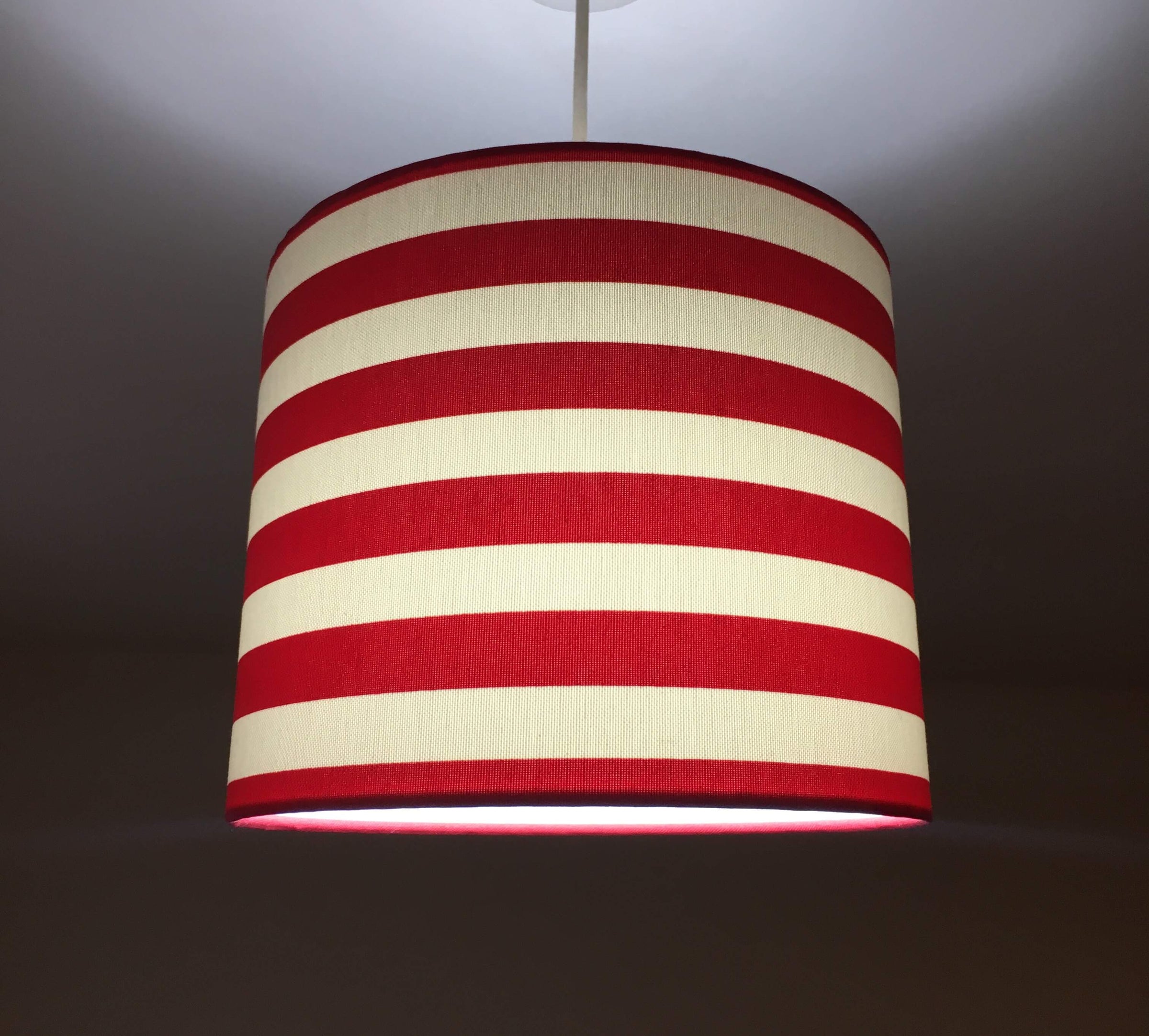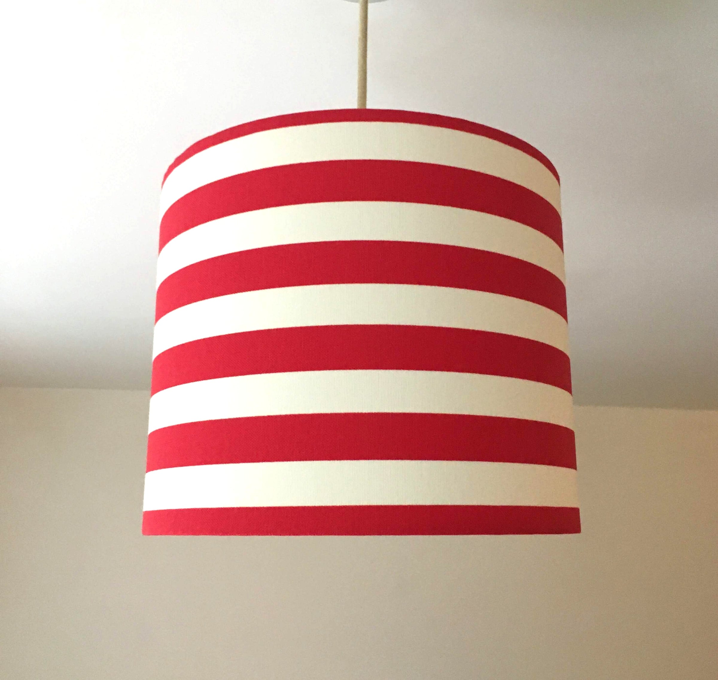 Red Lampshade, Horizontal Stripe Lampshade, Contemporary Ticking Lampshade