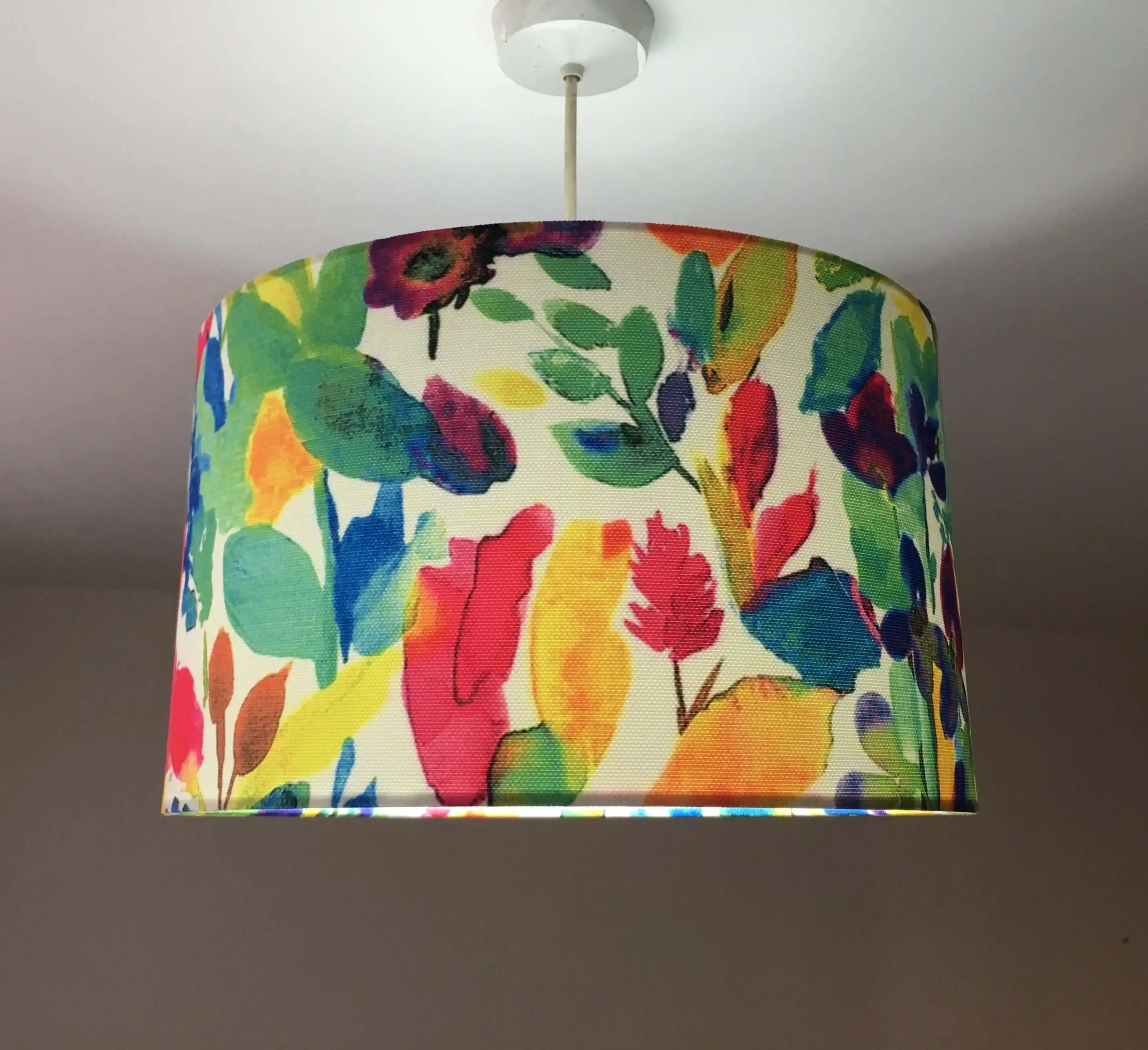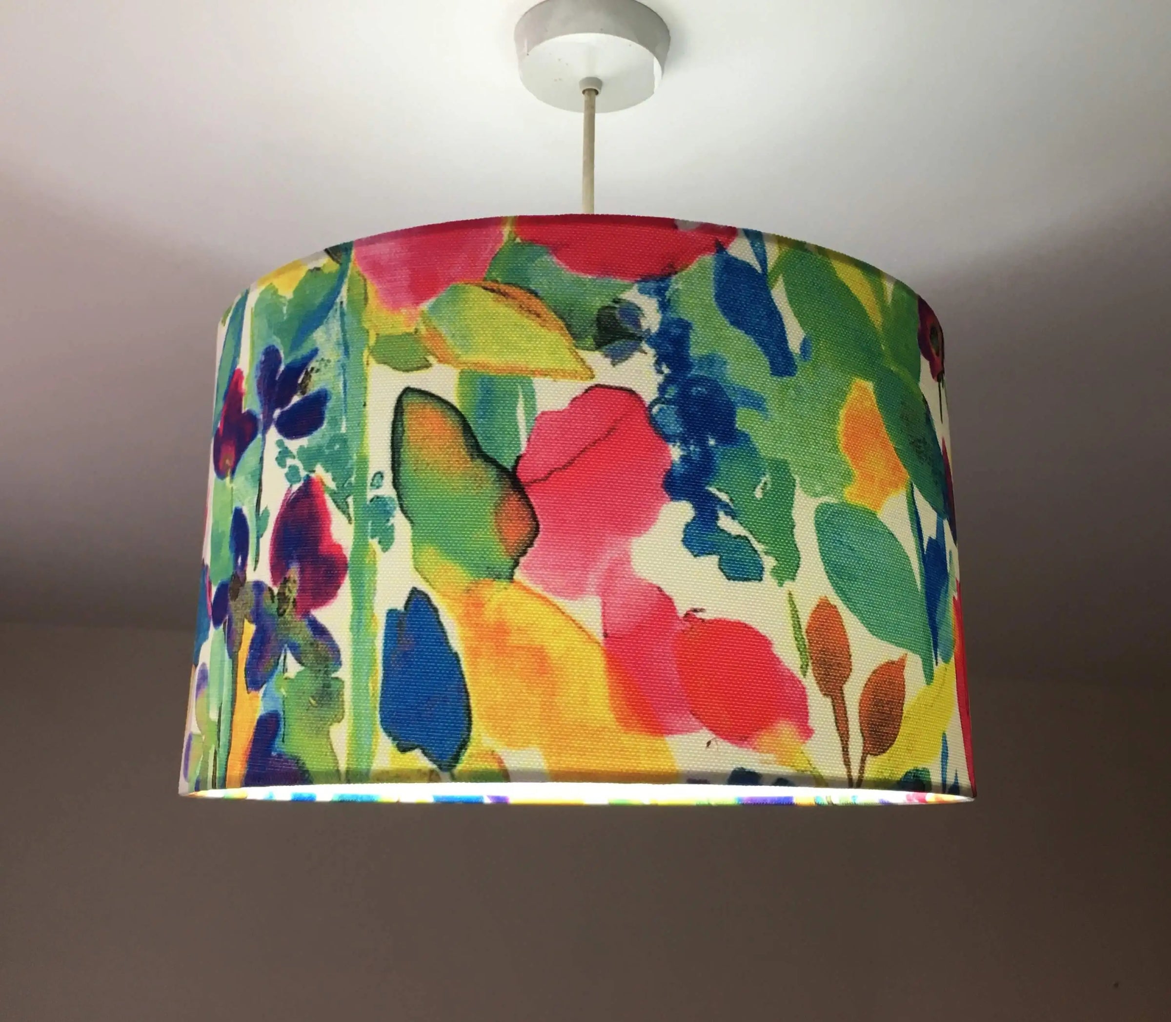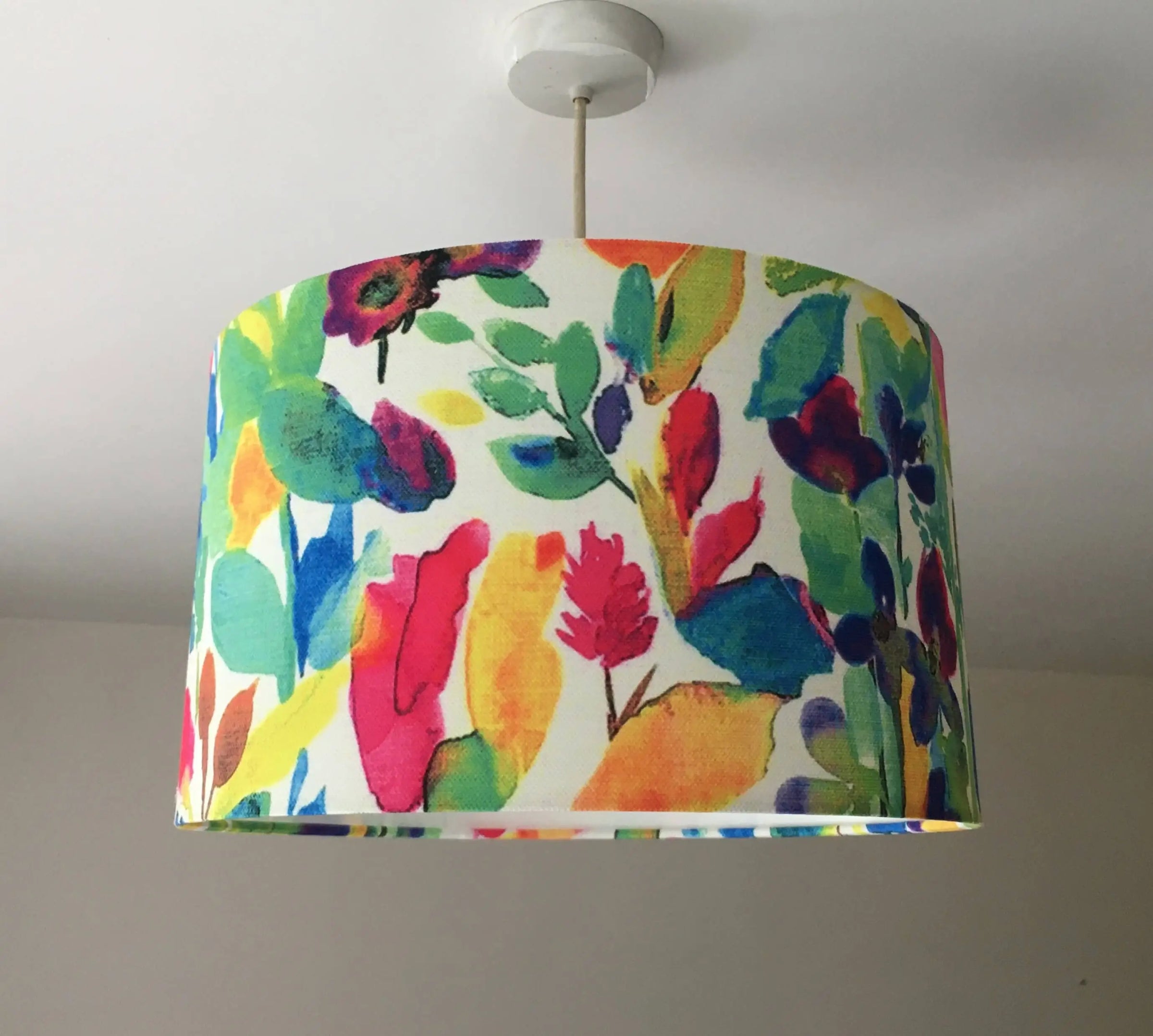 This watercolour lampshade is a multicoloured lampshade for bedroom, living room or kitchen. It is a leaf print lampshade for table lamp, ceiling pendant or a floor lamp. This painting lampshade is exclusive and designed with love. It is an art lampshade that will make a difference in unique spaces.