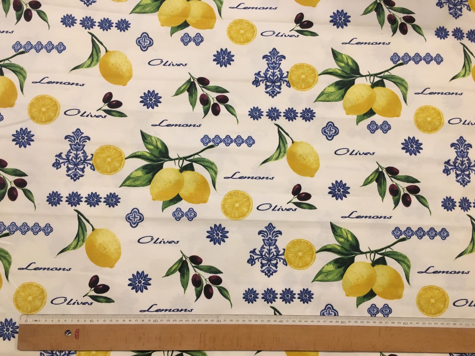 Lemon Print Olive Tree Citrus Yellow Fruit Upholstery Curtain Kitchen Fabric
