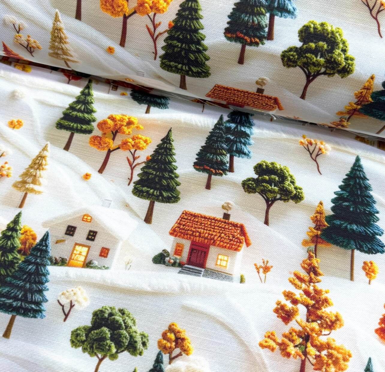This winter village fabric is a christmas tree fabric for pillows, cushions, chairs, sofas and stools. It is a snow fabric that can be used as indoor fabric and outdoor fabric. This scene fabric is 65% cotton and 35% polyester. It is durable, healthy and breathable. It is a 3d upholstery fabric for cushions, pillows, throw pillows, bags, sofas, curtains, drapes and various sewing projects. This 3d effect fabric can also be used as a cushion fabric, sofa fabric, couch fabric, bench fabric, curtain fabric, drapery fabric, bag fabric, runner fabric, tablecloth fabric or a chair fabric.