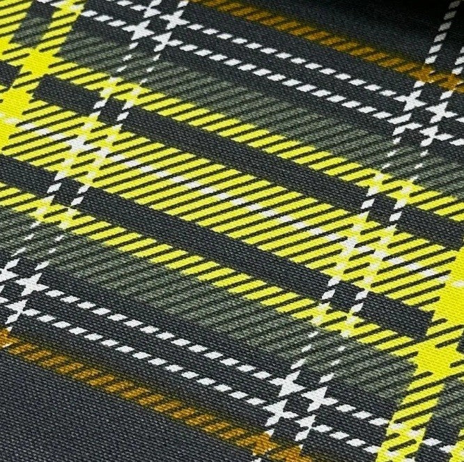 This yellow tartan upholstery fabric is a charcoal plaid fabric for cushions, pillows, chairs, sofas, couches, benches and stools. It is a grey checkered fabric that can be used as an indoor fabric and outdoor fabric. This scottish fabric is 65% cotton and 35% polyester. It is durable, healthy and breathable. It is a yellow and grey tartan fabric for pillows, cushions, throw pillows, bags, sofas, curtains, drapes and various sewing projects. This yellow plaid fabric can also be used as a furnishing fabric, furniture fabric, interior fabric, kitchen fabric, drapery fabric, throw pillow fabric, cushion fabric, bed fabric, sofa fabric, couch fabric, bench fabric, slipcover fabric, chair fabric, armchair fabric, bedspread fabric, table fabric, tablecloth fabric, dining chair fabric, curtain fabric, valance fabric, blind fabric, window fabric, DIY fabric, pillow fabric, bedding fabric, apron fabric, runner fabric, garden fabric, indoor tent fabric, bag fabric, tote bag fabric, picnic fabric, placemat fabric, upholstery fabric, craft fabric, sewing fabric, quilting fabric, decorator fabric, home textile fabric or a home decor fabric.