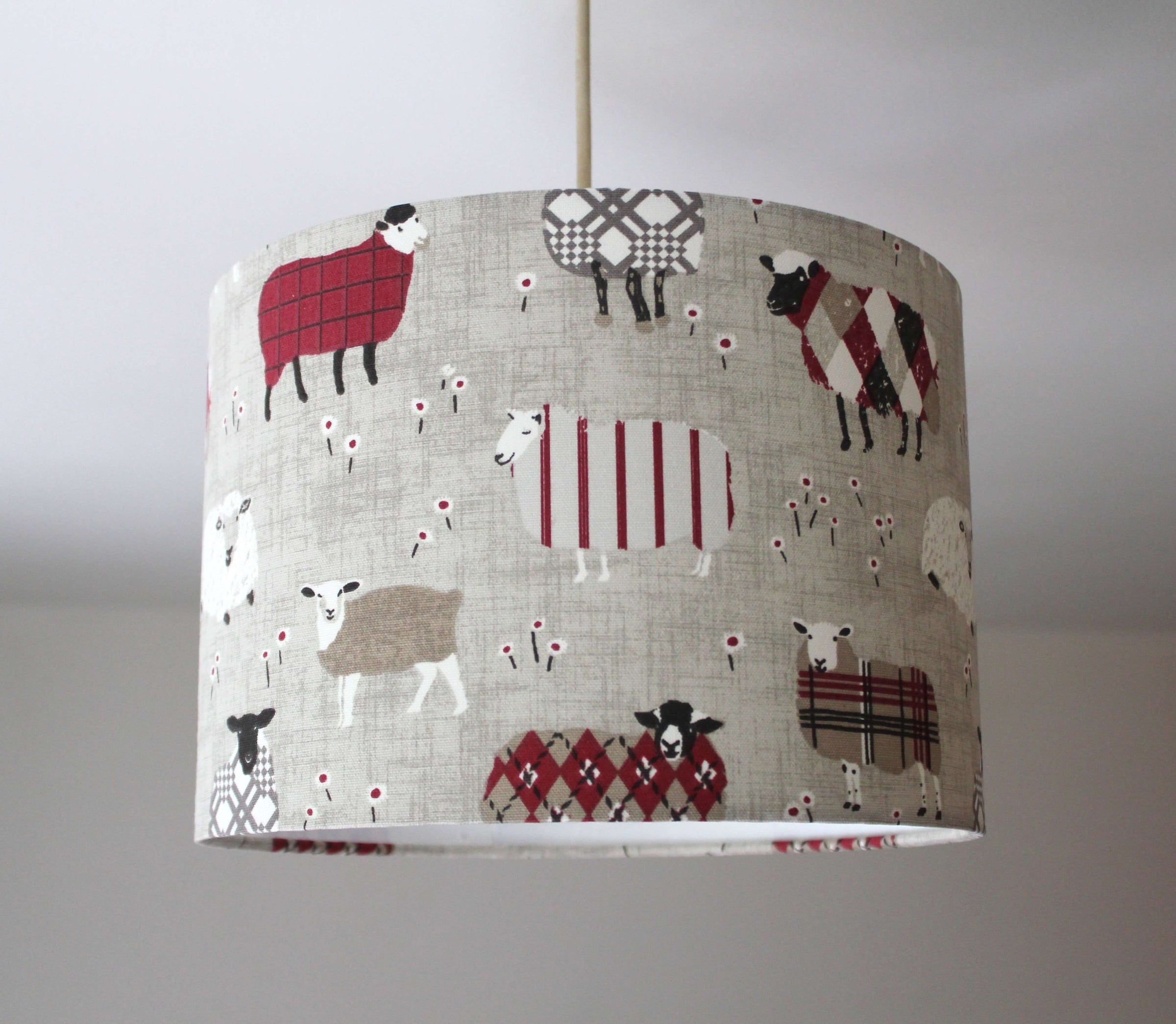 Sheep Lamp Shade, Farm Animal Lampshade, Red Grey Country Lampshade
